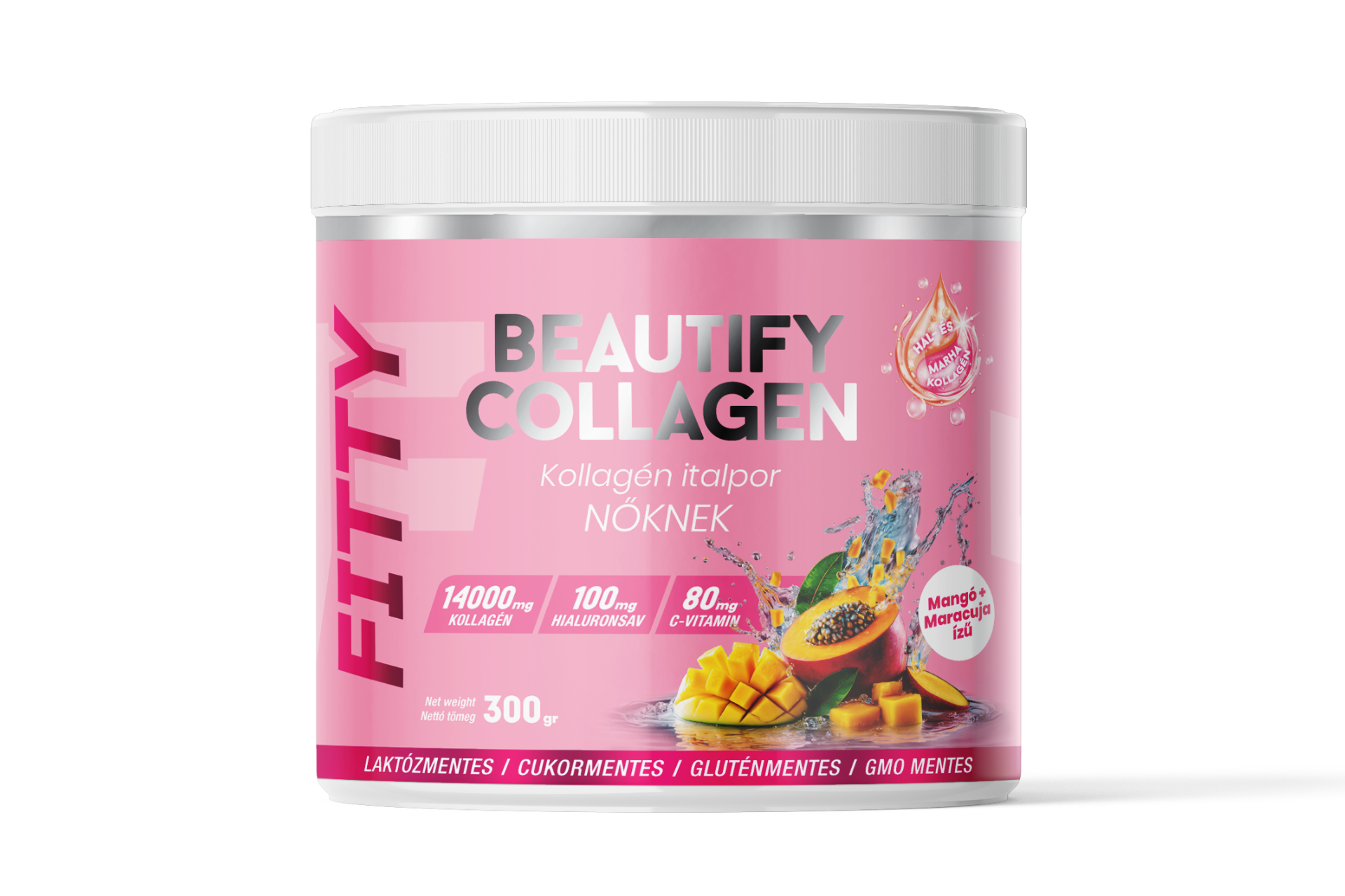 A Fitty kollagén italpor egy nőknek készült étrend-kiegészítő italpor, amely nagy dózisú (14 000 mg/adag) hidrolizált hal- és marhakollagén keveréket, hialuronsavat és C-vitamint tartalmaz. Célja a bőr, haj és körmök szépségének támogatása, a bőr hidratálása és a ráncok láthatóságának csökkentése, valamint az ízületek és izmok egészségének megőrzése. Könnyen oldódik, finom ízű, így kényelmes és élvezetes a mindennapi fogyasztása. Kollagén italporunkat azt szem előtt tartva fejlesztettük ki, hogy egy valóban hatékony prémium minőségű hazai terméket adjunk a vásárlóink kezébe elérhető áron.