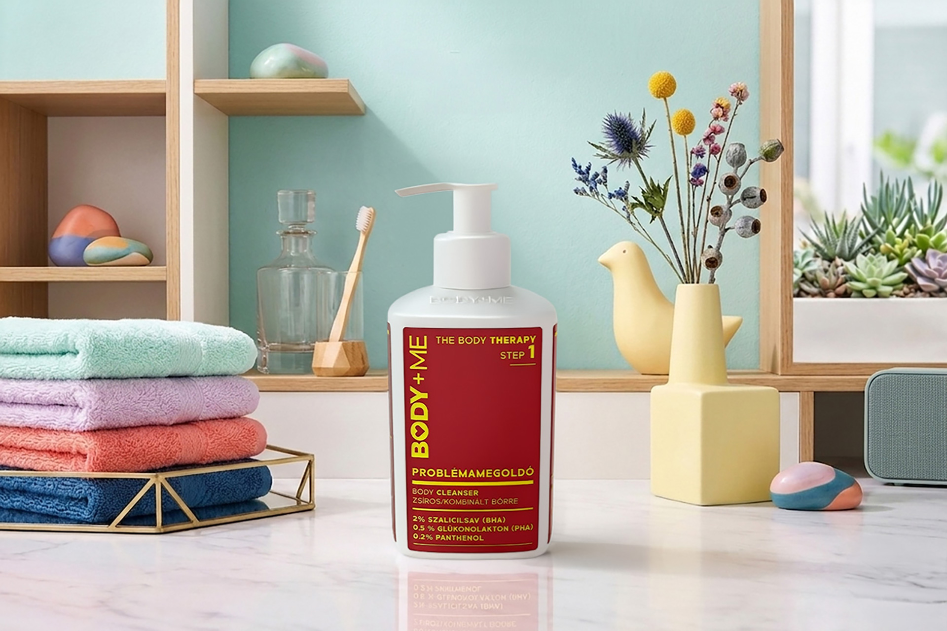 A BODY+ME Problémamegoldó cleanser a benne lévő 2% szalicilsavnak köszönhetően gyengéden hámlaszt egészen a pórusok belsejéig, emellett gyulladáscsökkentő hatása is van. Nem csak a pattanások ellen szuper, hanem segít megakadályozni a borotválkozás utáni szőrtüszőgyulladás kialakulását és enyhíteni a keratosis pilaris bőrtüneteit is. Extraként a sejtmegújulást kíméletesen segítő PHA-savat és bőrnyugtató, regeneráló hatású panthenolt is tartalmaz. A tudatos bőrápolás jegyében mentes az illatanyagoktól és az alkoholtól. Használd minden nap és néhány hét után látni fogod az eredményt!