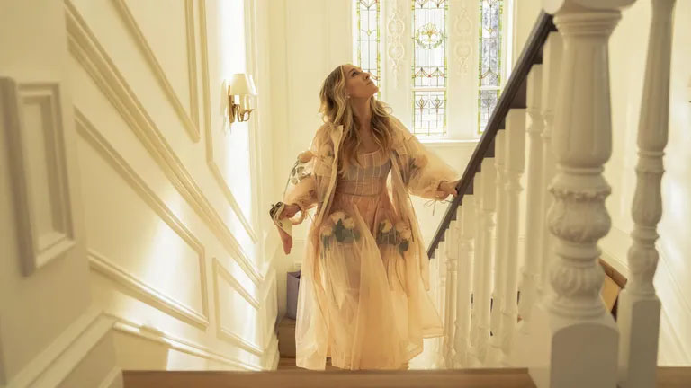 Carrie Bradshaw egy áttetsző, szegfűvel díszített tüllruhában és egy Simone Rocha 2024-es tavaszi/nyári kollekciójából való, a ruhához illő kabátban nyitotta meg az új évadot. Íme, az utóbbi:
