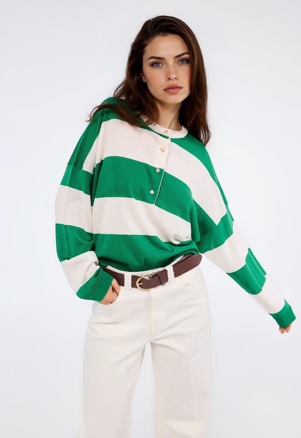 • A csíkos felső nemcsak látványos és szerethető, de sokoldalú is, szinte bármelyik stílusba beilleszthető.