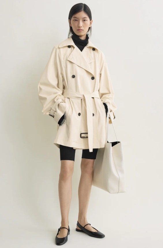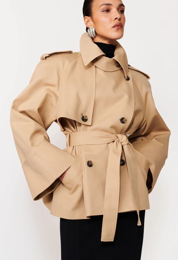 - A klasszikus trench coat újragondolt, rövid verziója egyszerre klasszikusan elegáns és játékosan stílusos.